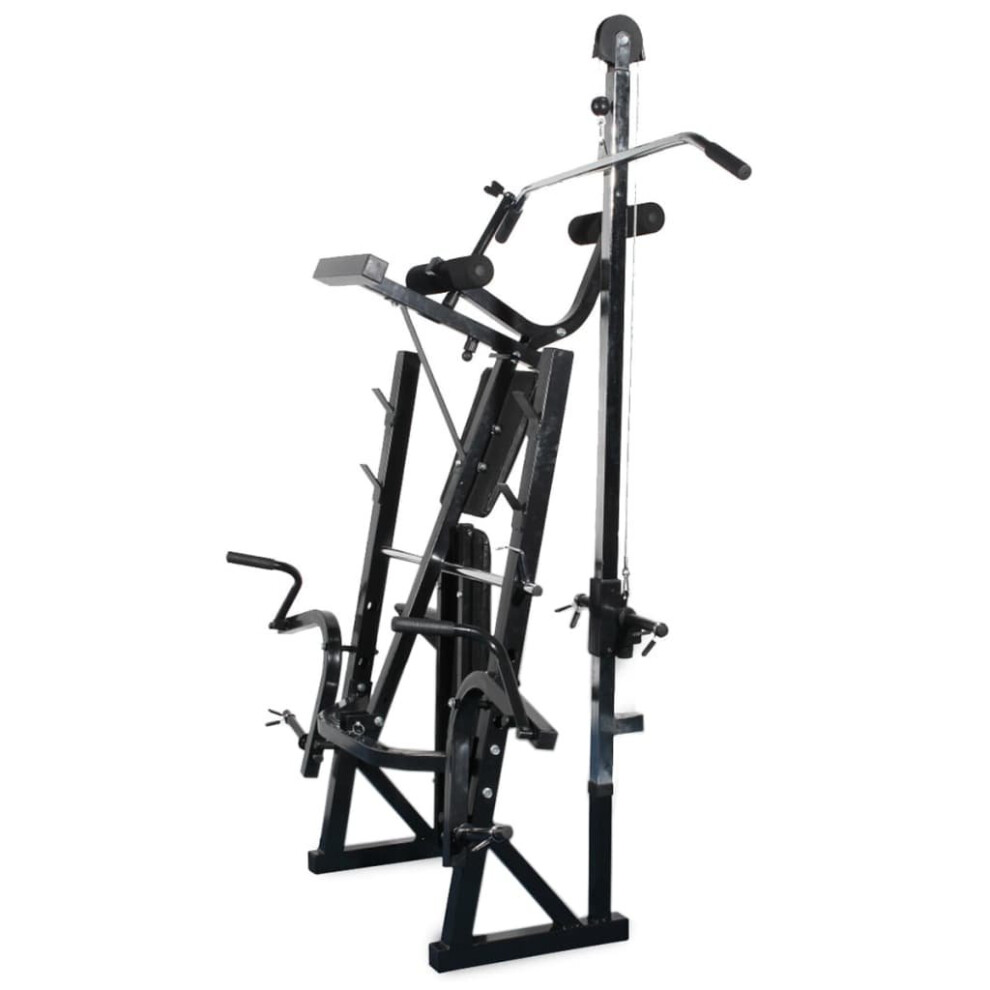 This adjustable workout bench with a weight rack and barbell and dumbbell set will be a great choice for working out in the comfort of your own home, and saves you the hassle and expense of going to a gym. This workout bench provides a wide range of exercise options. The backrest can strengthen your back muscles. Thanks to the curl and butterfly station, shoulders and arms will be exercised, while the leg-curl will train your thighs and legs. The wide range of workout combinations and exercises allows for an effective, total body workout, while the adjustable levels enable the workout to be adapted to suit your specific needs. The sturdy steel construction of the bench ensures your safety during the exercises. The durable cotton-padded cushion will offer you the utmost comfort. The barbell and dumbbell set features solid chrome-plated bars with quick-action spring collars (for barbell bar), non-slip knurled grips, and fluted star-screw caps (for dumbbell bars) for secure attachment of the weight plates. You can work out without worrying about safety issues. The weight plates are made with a robust polyethylene casing. They can be combined in various ways for different training purposes. Delivery includes a workout bench, a barbell bar, two dumbbell bars, six 1.25 kg weight plates, four 2.5 kg weight plates, two 5 kg weight plates, four caps and two spring collars.